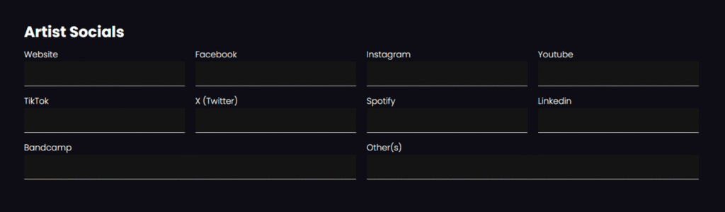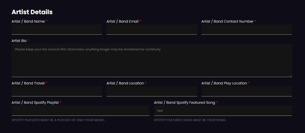 • Artist / Band Spotify Playlist – A link to your Spotify playlist (if you have one).